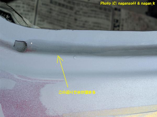 ちゃんと両サイドの水抜き穴に到着しまして、エンジンルームに水が滴っています。