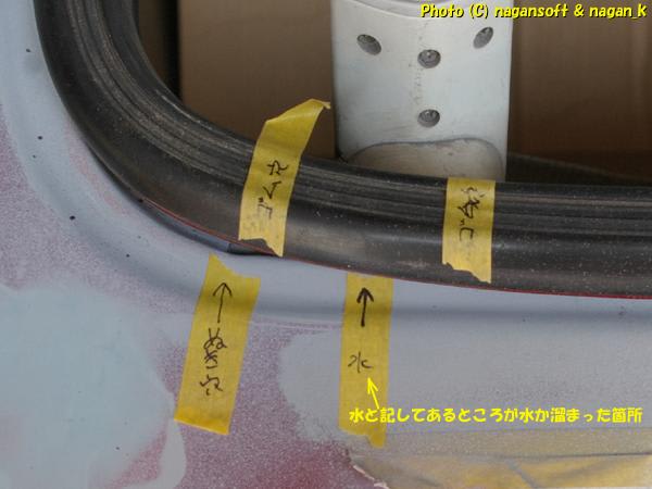 水たまり場所が、ゴム穴間の真ん中あたりです。