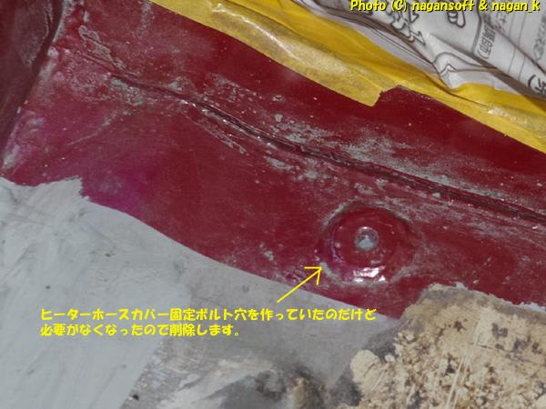 ずっとずっと以前にヒーターホースカバーを固定するボルトを差し込む部分を作成しています。