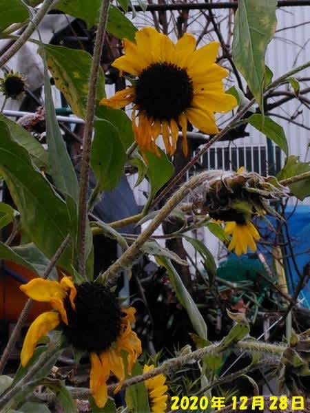 さあさあ、このヒマワリは黄色い花が元旦まで残るんでしょうか?