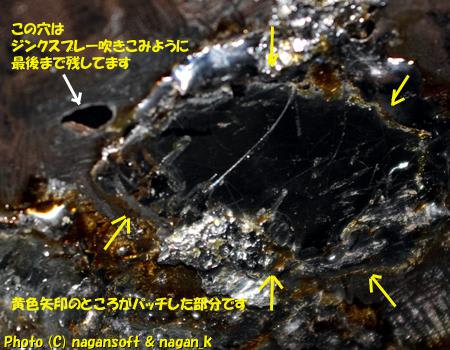 そして、隣のサビ穴から内部にジンクスプレーを吹きこむのです。