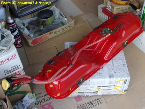 写真に見えるマスキングテープは、「ここに赤色タッチアップしたよ」という目印なので深いことは考えないでください。