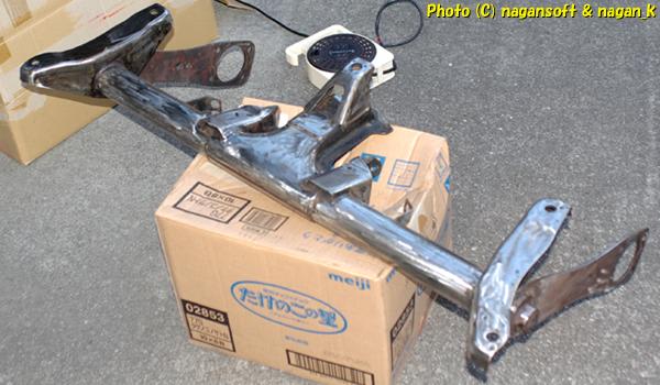 リヤサスペンションのメイン部分(メンバ)のサビ取りを一応終了することにしました。