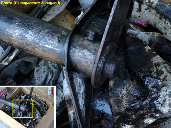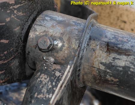 ここは、ものすごそうな錆びの予感です。しかも、リューターが入らない袋形状です。