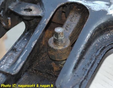 サスペンションの硬さ調整なのか、車高調整するものなのか、ともかくボルトで調整できるようになっている箇所です。
