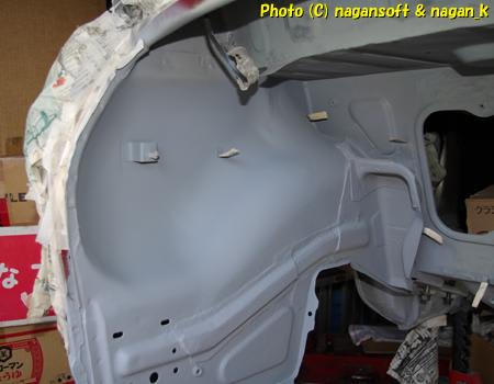 この後、30分ほど時間が余ったので、ガソリンタンクが釣られている空間部分の天井をプラサフ吹きました。