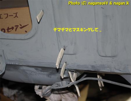 この後は、エンジンルーム内の、ケーブル押さえや、固定ボルト等を、マスキングです。