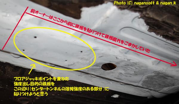 そこで、センタートンネルの溶接強度がある部位に鉄板を貼ろうと思います。