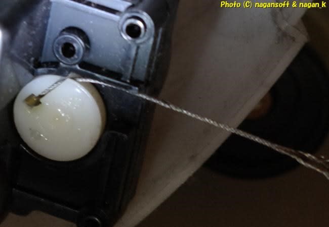 ネジ止めならワイヤー交換してやれと思ったんだけど、タイコとなるとそういうわけにはいきません。小さいタイコを準備してワイヤー先にタイコを繋いでって、タイコになる部品がありません。