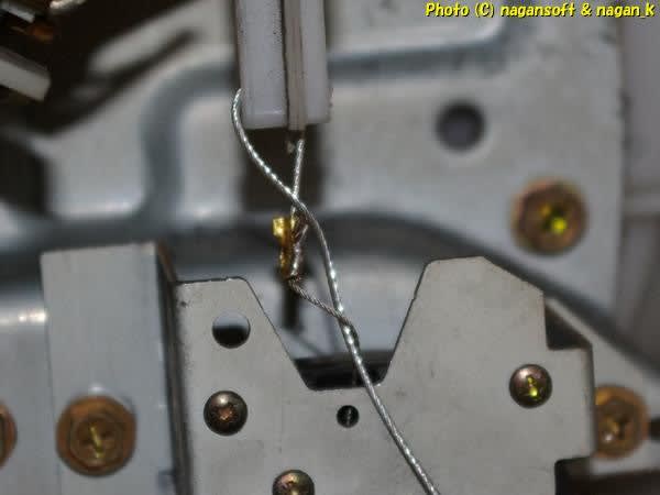 ワイヤー2本をギボシカシメ部分にてカシメ固定して、その隙間にハンダを流しました。