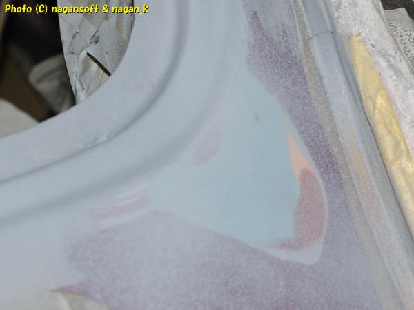 リヤガラスはめ合い部右横は、昨日に薄付けパテを追加しました。