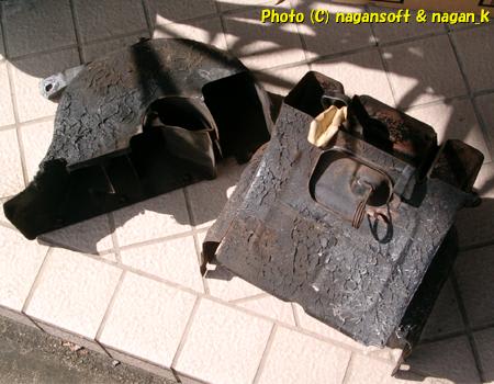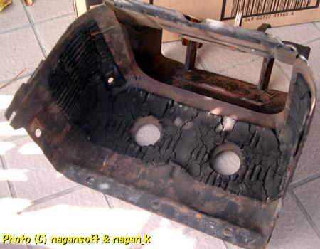 内側に共振止めのようなものが貼られていたんだと思いますが、40年以上の経年でボロボロです。