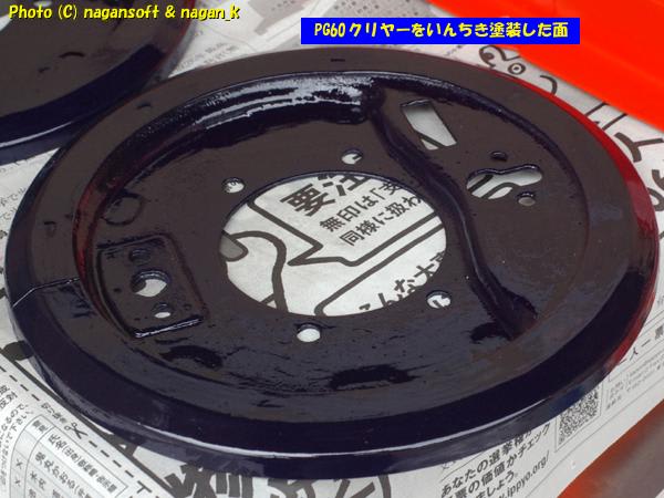 「PG60クリヤー+PG80硬化剤10%」にてトップコートして一晩放置プレーでの光沢です。