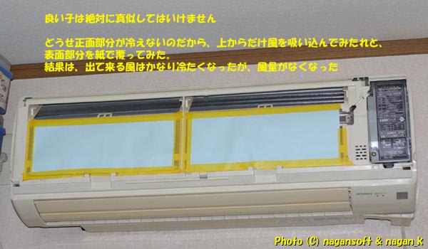 正面の冷えないフィン部分を風が通過しないように紙で塞いでみました。