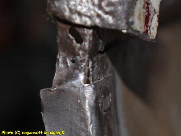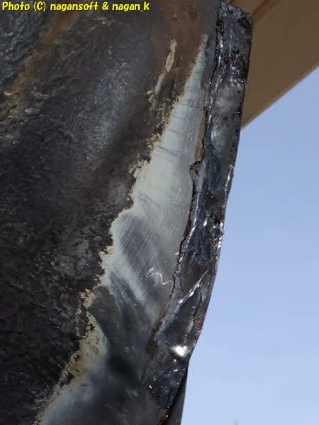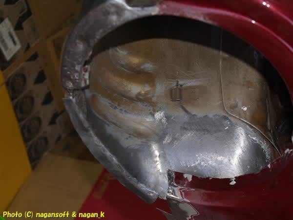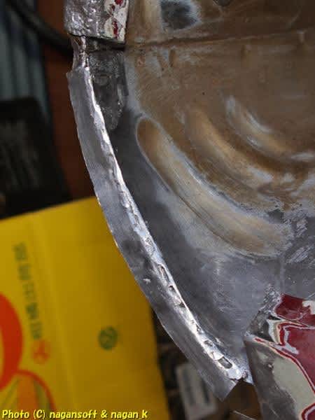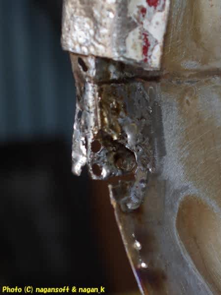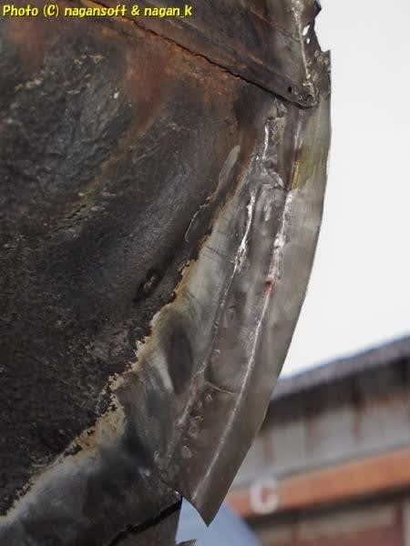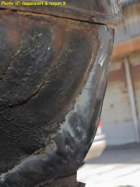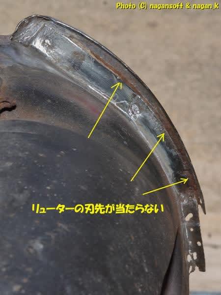 反対面のリブ折にて谷になっている部分はリューターの刃先が当たらないのでサビが削れません。悔しいけど仕方ありません。