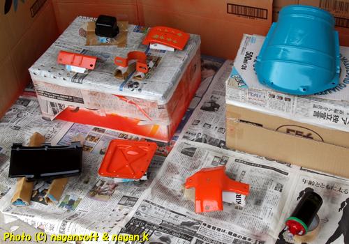 サビ止め塗料(エボローバル)—>プラサフ—>ラッカー系缶スプレー(主にフォークリフト用色スプレー、ホルツの自動車用缶スプレー)—>ウレタンクリヤー