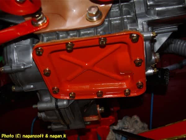 まずはミッション下オイルパンの取り付けボルトを本締めです。