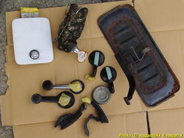 リヤクオーターガラスの開閉ヒンジも入ってます。私が修理する前にこの部品を入手できていたらという悔しい部品ですよ。
