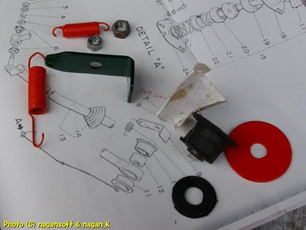 車体についていたものを錆取り蘇生して封印していたものを引っ張り出してパーツリストの上で並べて比較です。