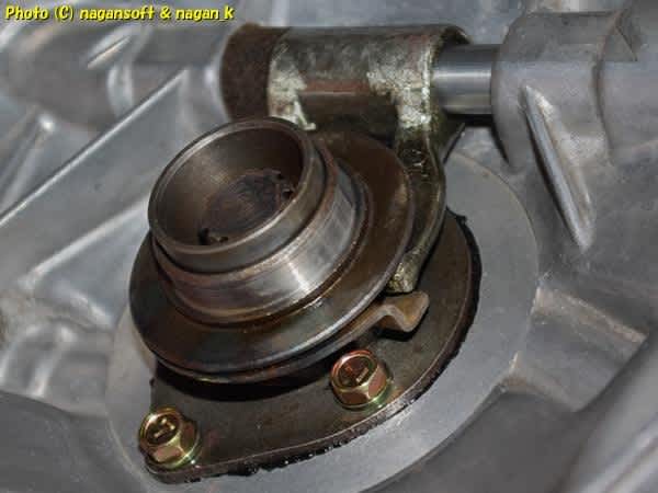 次は、シフトリンクロッドとミッションをリンクする金具部分です。