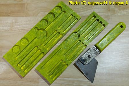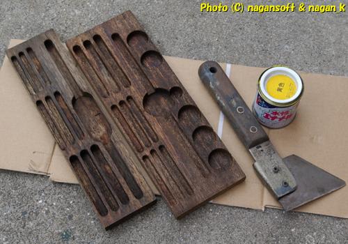 ついでに、スクレーパーのような道具1本も一緒に漬けていたので、そのグリップも同様にペーパー掛けしました。