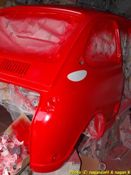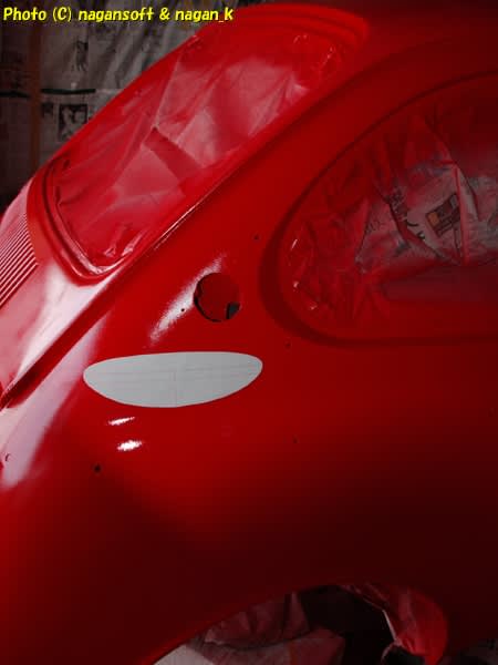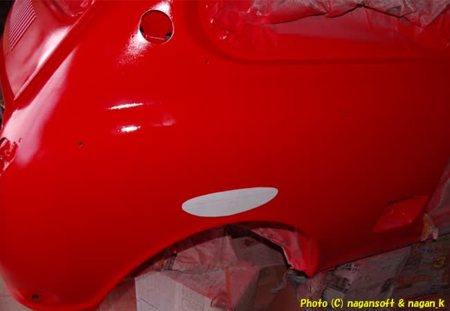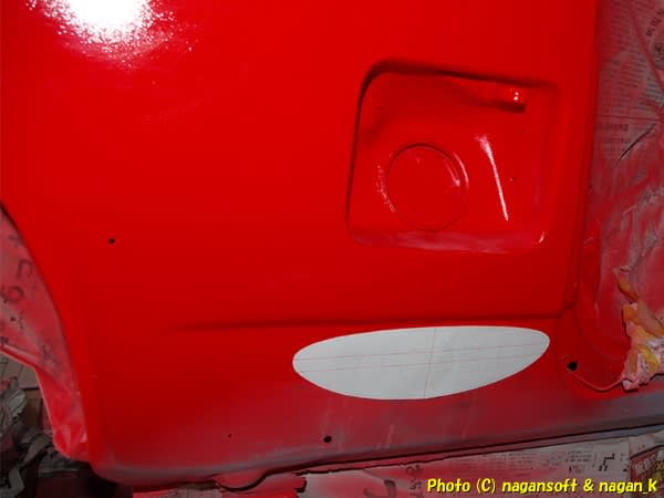 中研ぎ完了したので、富士重工マークをどこに文字入れしたらいいかをちょっと検討してみます。
