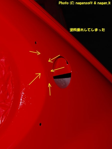 すると、シャイニングレッドの塗装難易度はすごく高いということが発覚です。