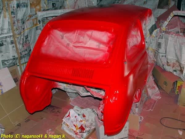 本日は陽が暮れるまで赤色を塗りました。500gの塗料を吹きました。