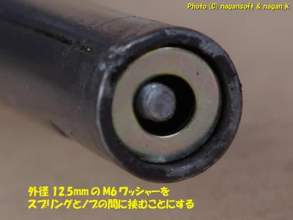 ノブとスプリングの間にワッシャーを一枚挟みこむ形になります。