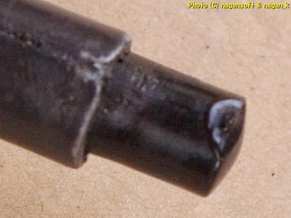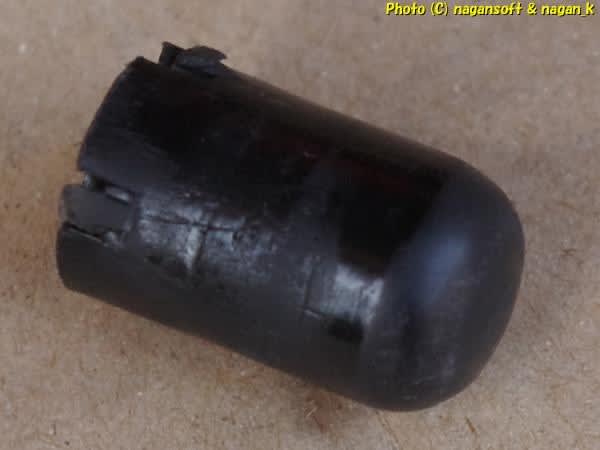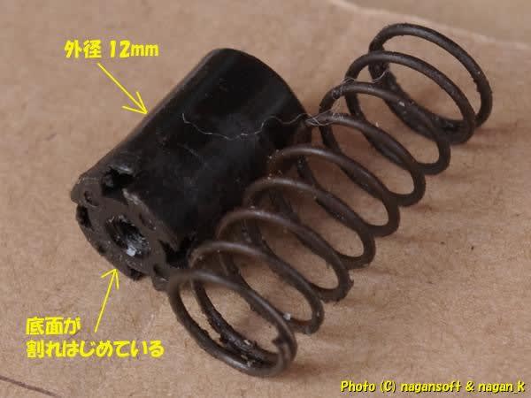 ノブの外径は12mmです。ノブ底面にクラックがあります。って私が捻って抜いたからではなくボタンを押すことで力がかかり樹脂部品にクラックが入っているってことです。