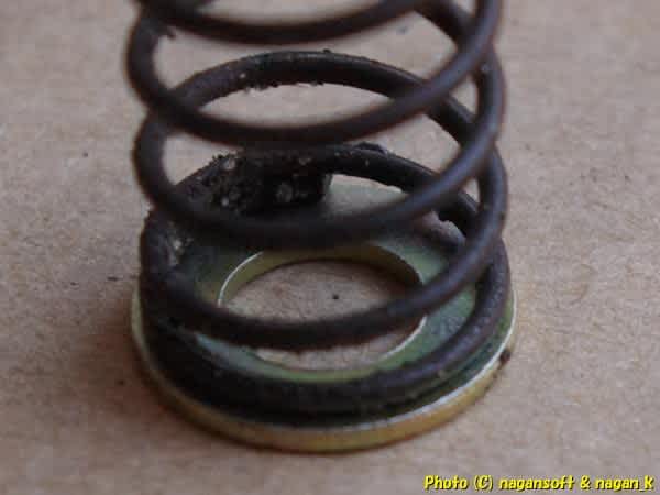スプリングとの当りはこんな感じでして、可動隙間に噛み込むことはないだろうと判断します。