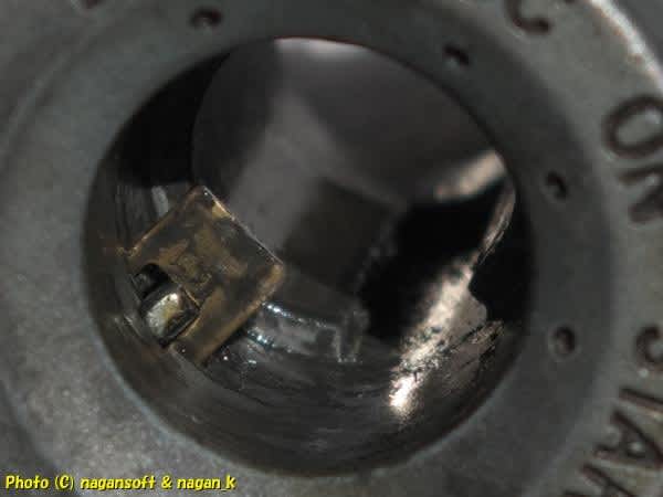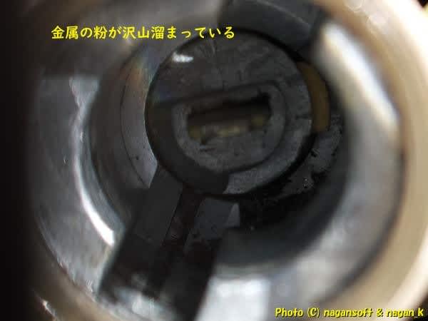 シリンダーが刺さっていた筒内部は、金属の粉が溜まってます。