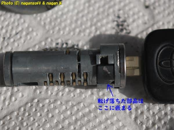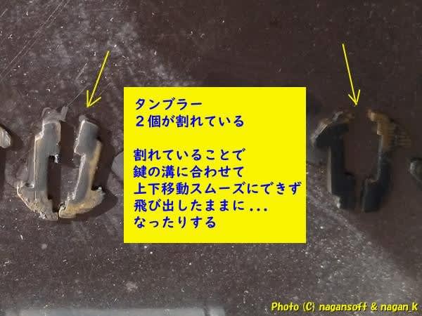 割れていることで鍵溝に合わせて上下移動がスムーズにできず一部が飛び出したままになるってことです。