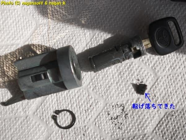 キーシリンダーは上にあるポッチを押し込んだら抜き取ることができるらしい。