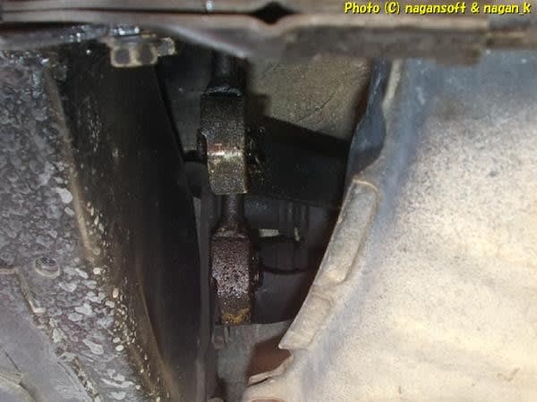 エンジンルームから伸びるリンクロッドと車体下のリンクロッドを接続している部分です。