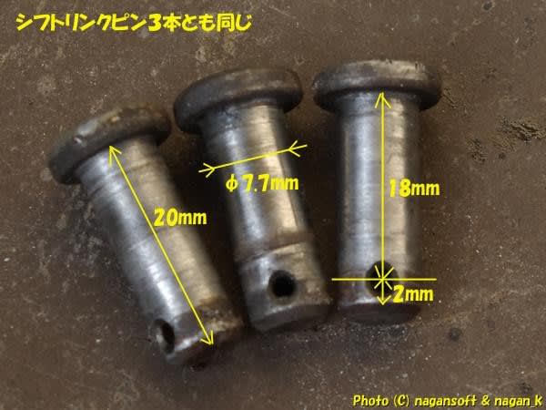 シャフト系はM8用の穴に通すので直径7.7mm。ピンの長さは20mm。抜け止めピン穴は先端から2mm。