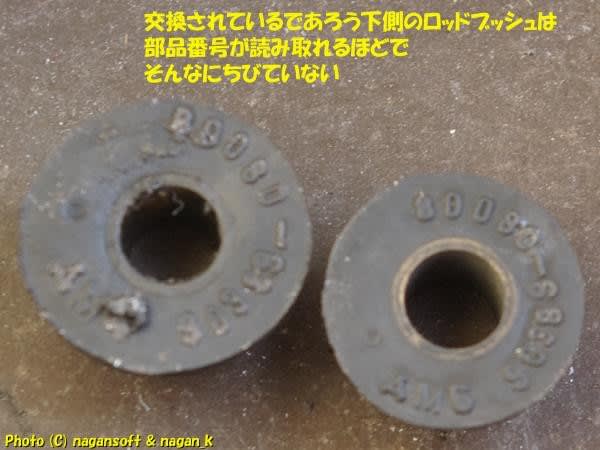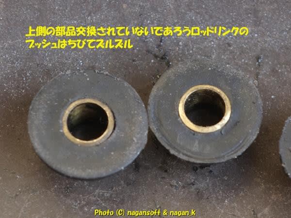 手が届きにくい上側のロッドはウエーブワッシャーが残っていて、そこについていたブッシュはズルズルにちびているのよ。