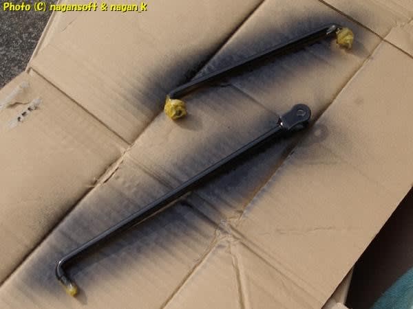取り外したシフトロッドは汚れ落とししてシャーシブラックでお手軽塗装しておきます。