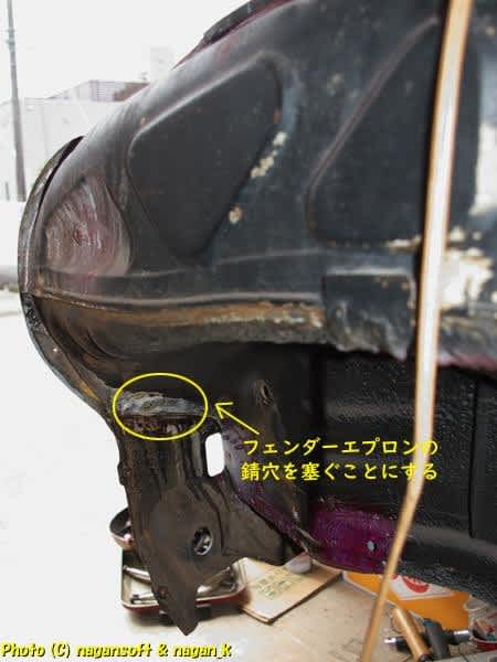 フェンダー側面合わせ錆穴も錆転換剤で黒色へ…