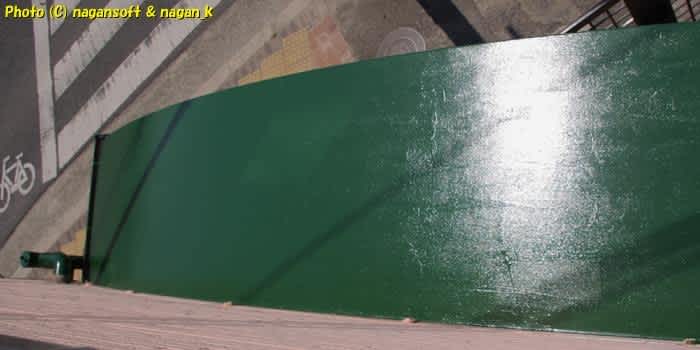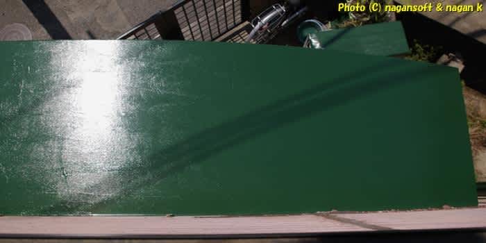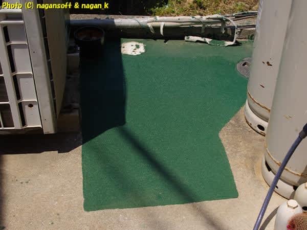 緑の床もええなー。このまま玄関前を全部塗りつぶしたら雰囲気かわりそうだ。工場の床みたいでいいじゃないか。