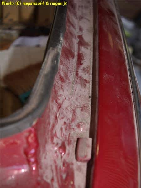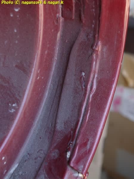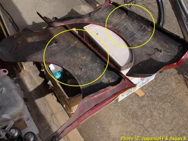 すでに取り外している右前フェンダーパネルと比較してみると違うんですよ。