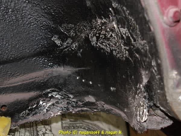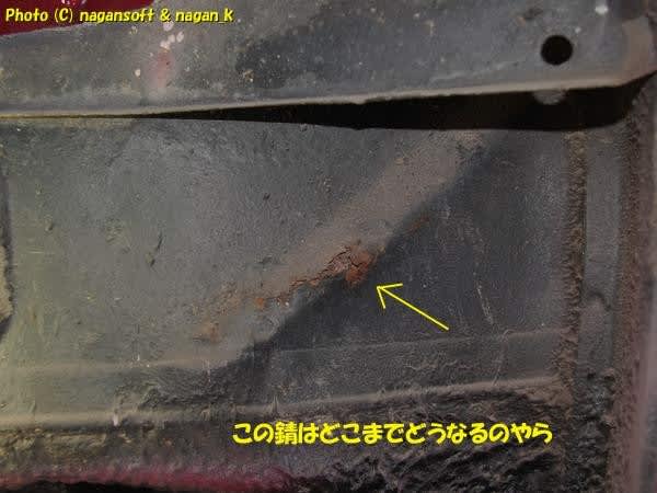 この錆のできかたって、まさかの鉄板裂傷とかいわないだろうなー。