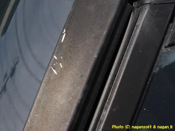 ガラスの上側モールです。そこそこに小傷があるのがわかりますか?