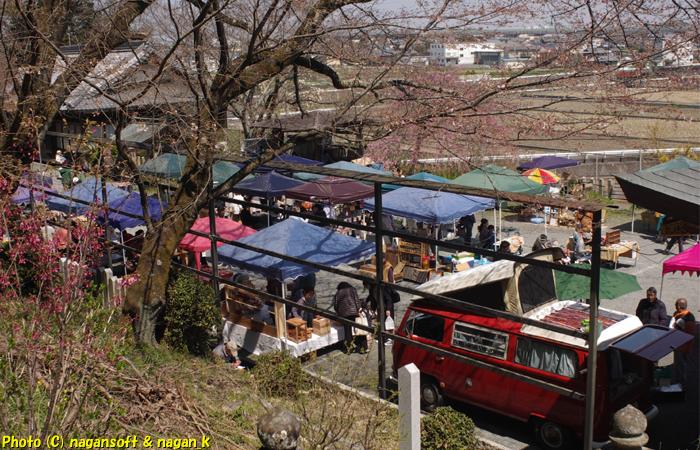 そのまま振り返って、境内のフリーマーケットの様子をパチリ。
