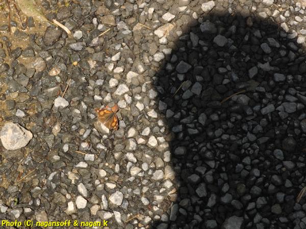 だってカメラを構える私の影と蝶の位置関係を見てください。ほんとうに足元まで接近しても平気なんですよ。