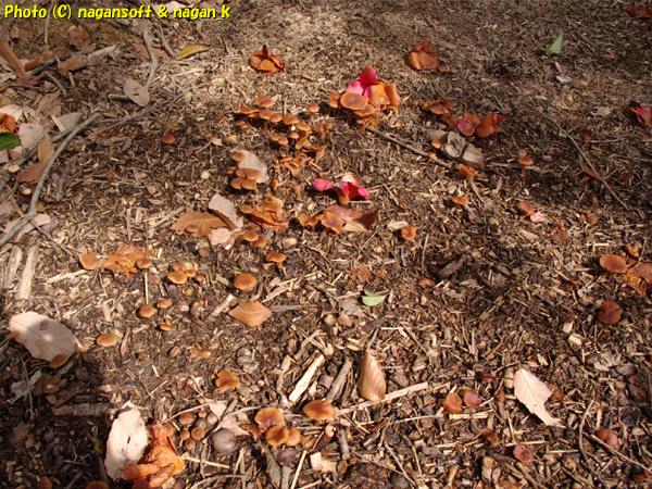 だって、道のど真ん中に当たり前のようにキノコの群集です。