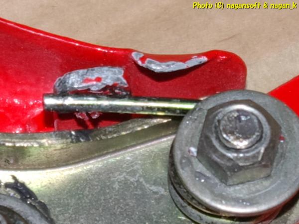 そうそう、リヤブレーキの赤色している塗装ですが….