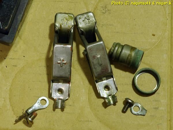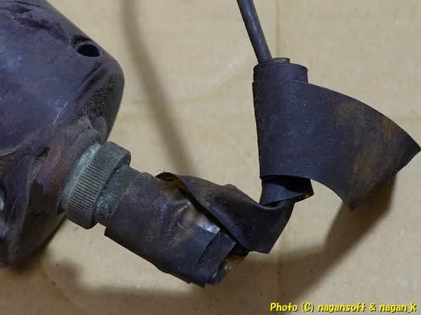 ぐるぐる巻きでとろけるように朽ちていたテープをはがすとこんな金具が登場です。