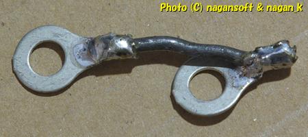 それを避けようと考えて、元ついていたハンダの剥がれたヒューズをちょっと短くして両端にリング端子を加締めて短いヒューズを作成してみた。