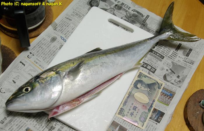 とかなんとかで、なにやらスマートなハマチを嫁が釣り上げました。